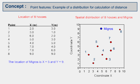 The linear distances (Euclidean distances) among the point features are fundamental properties to describe the spatial patterns of point features.