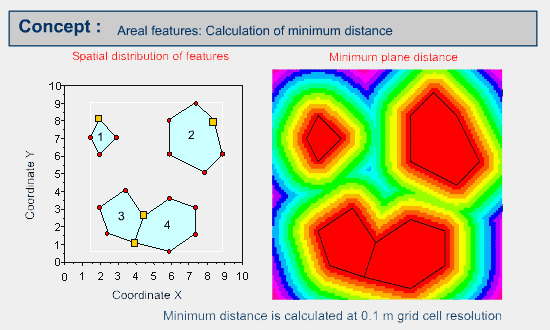 Then the grid cells are allocated to the properties of areal features based on the nearest proximity distance between the